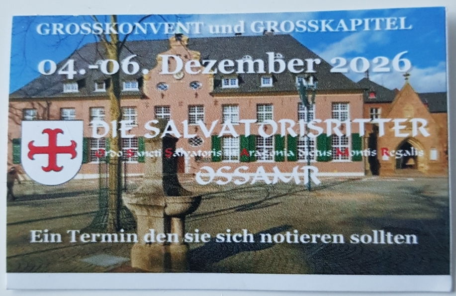 | Dezember | 04. bis 06. | SAVE THE DATE - Grosskapitel u. Grosskonvent - Die Salvatorisritter (OSSAMR) Vorankündigung, hier |